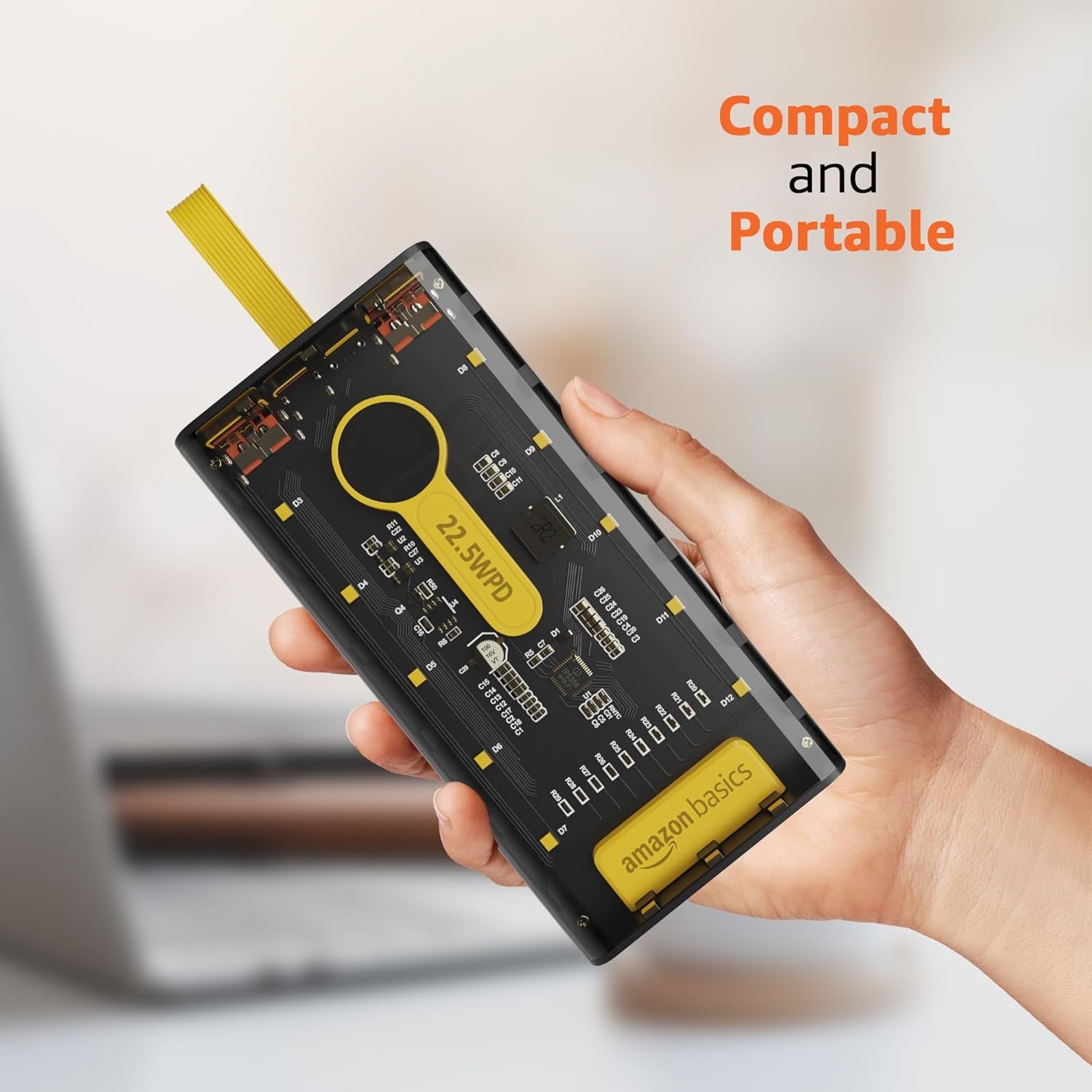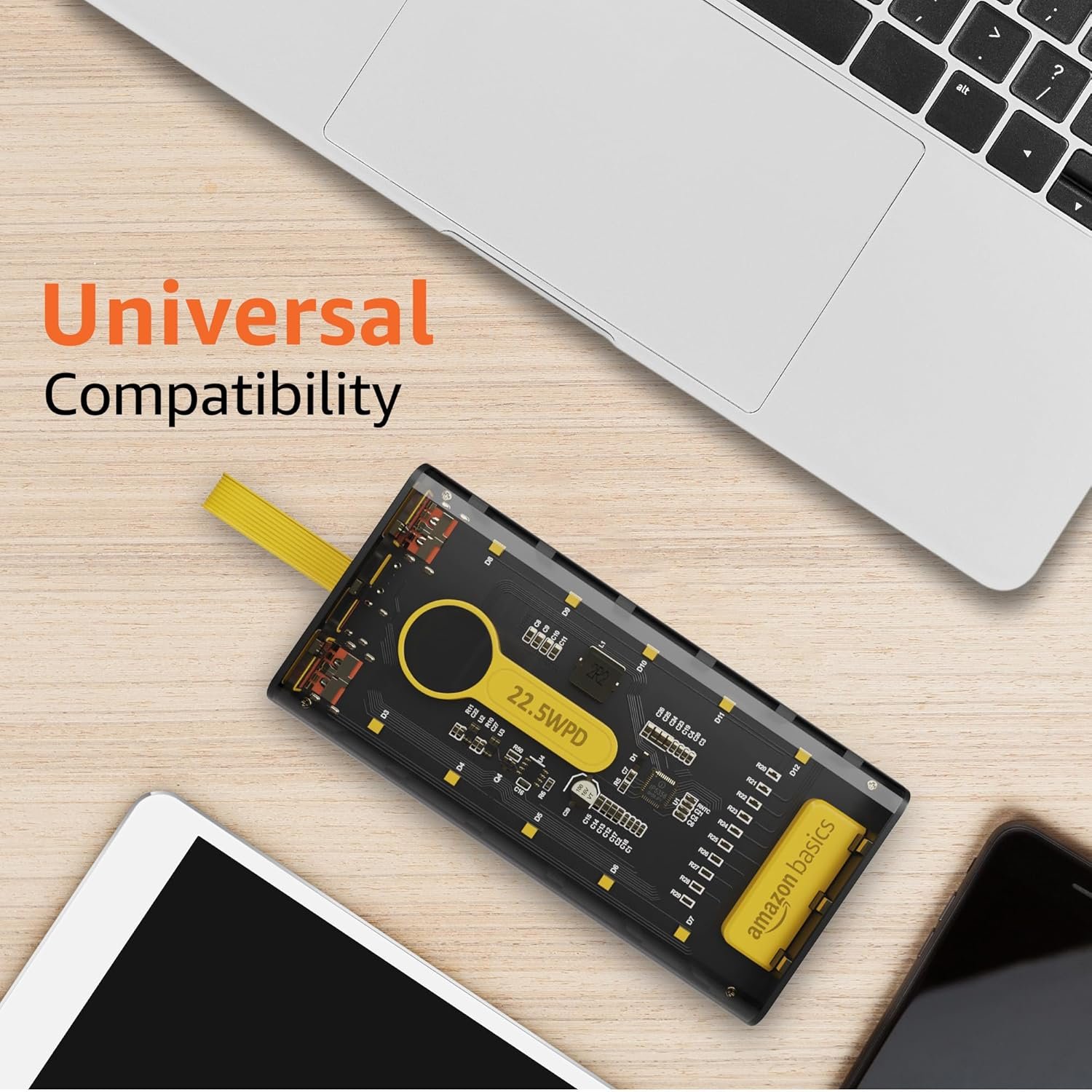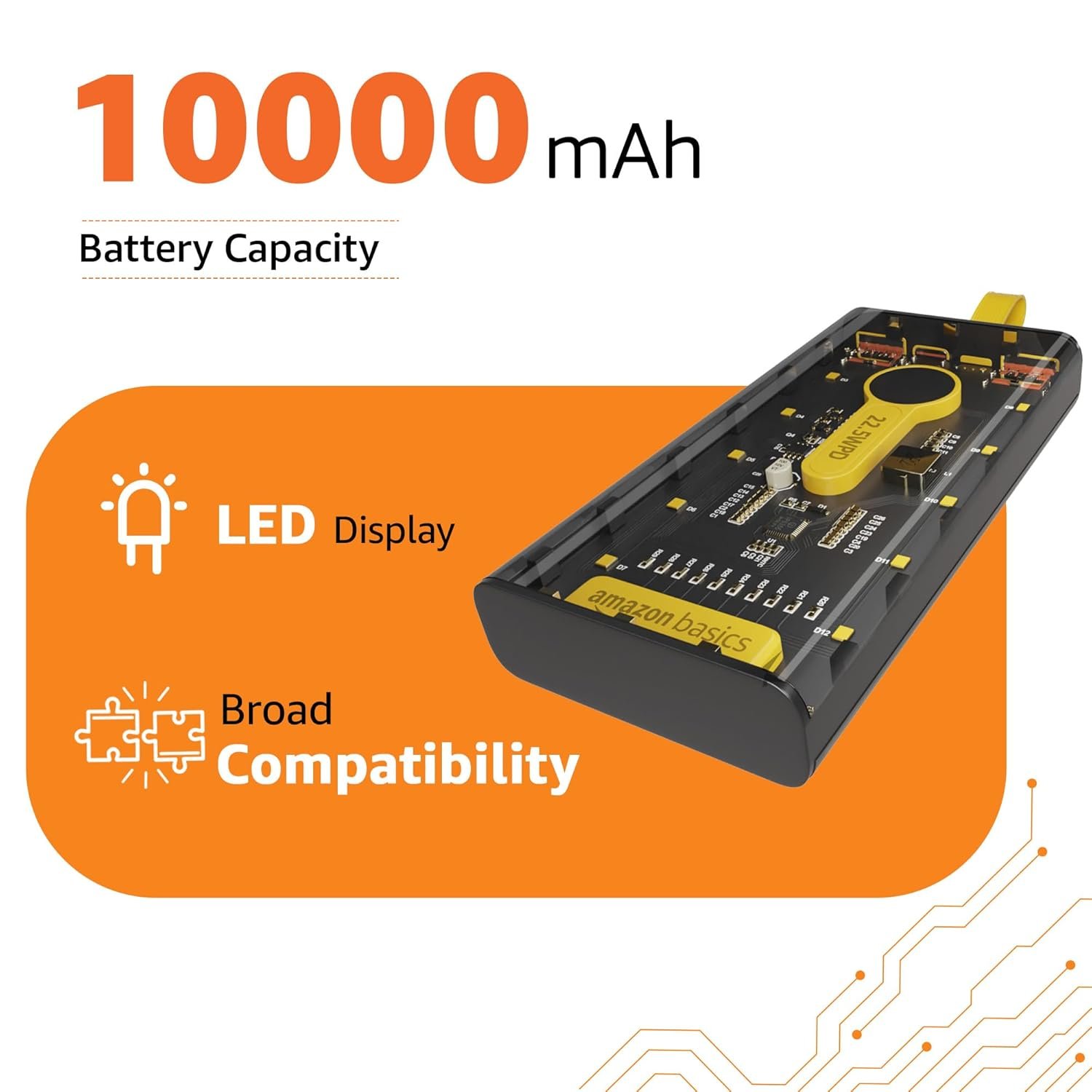 Amazon Basics 10000mAh Power Bank | 22W Fast Charging | Dual USB & Type-C Ports | in-Built LED Light | Power Bank, ‎Clear Bolt- Transparent