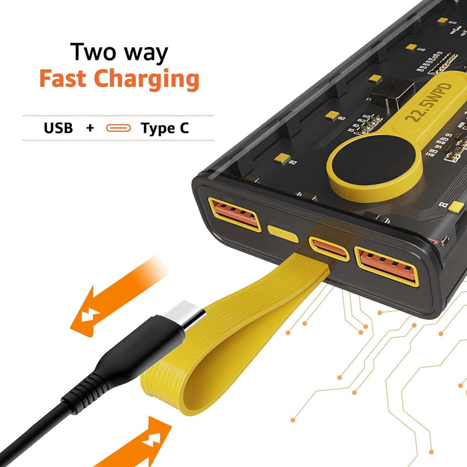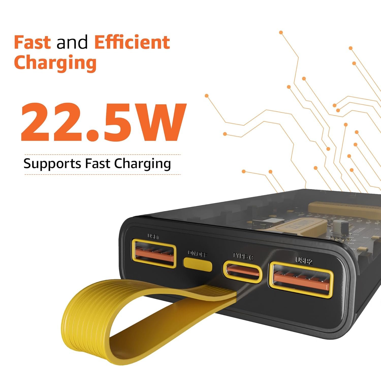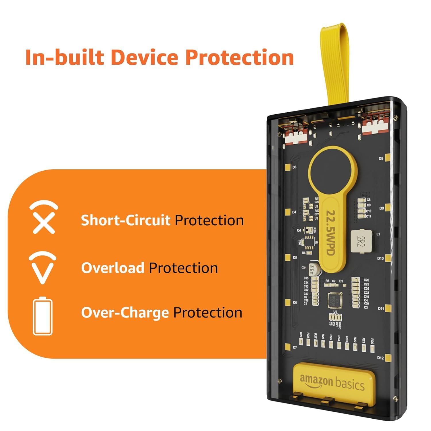 Amazon Basics 10000mAh Power Bank | 22W Fast Charging | Dual USB & Type-C Ports | in-Built LED Light | Power Bank, ‎Clear Bolt- Transparent