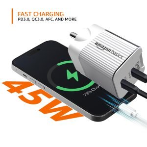 Dual Port 45W ChargerCharges two devices simultaneously, with each port supporting up to 45W output for rapid charging. |