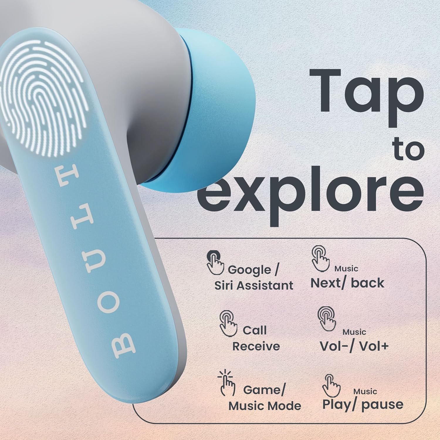| Special Feature | Bluetooth 5.3, Sweatproof, Lightweight, 10mm Bass Drivers, Type C Fast Charging, 60H Playtime, Zen™ Quad Mic ENC, Microphone Included, 45ms Low Latency Gaming, Touch Control |