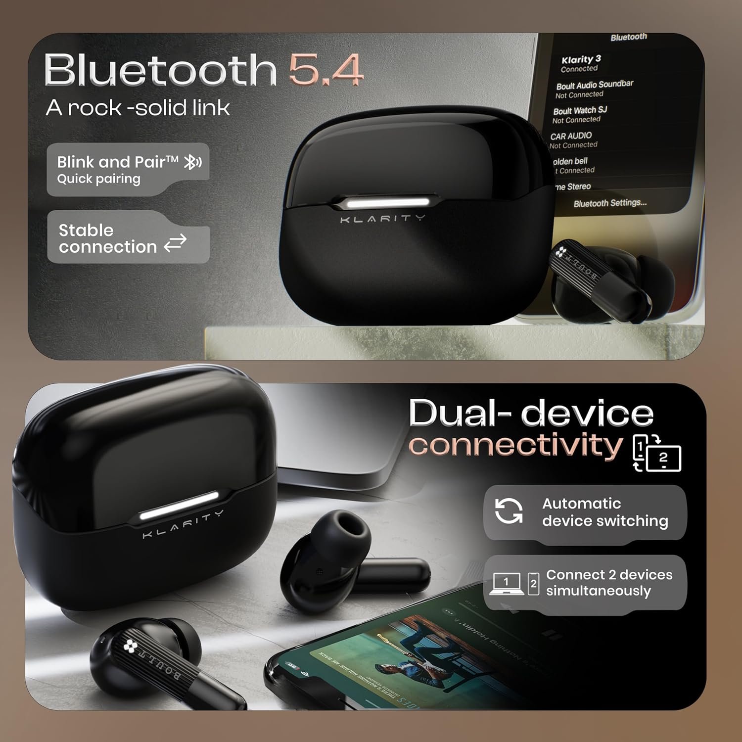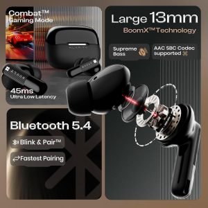 Fit and finish, 6 Mic Hybrid ANC, Bluetooth 5.4, Spatial Audio, 50H Playtime, Hex Mic ENC, App Connectivity, 13mm Bass Drivers, Dual Device Pairing, Touch Controls, Multipoint Pairing |
