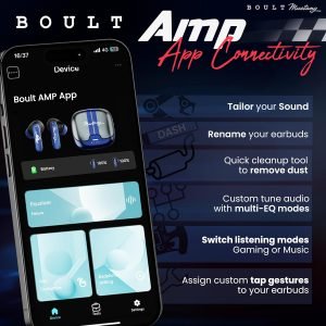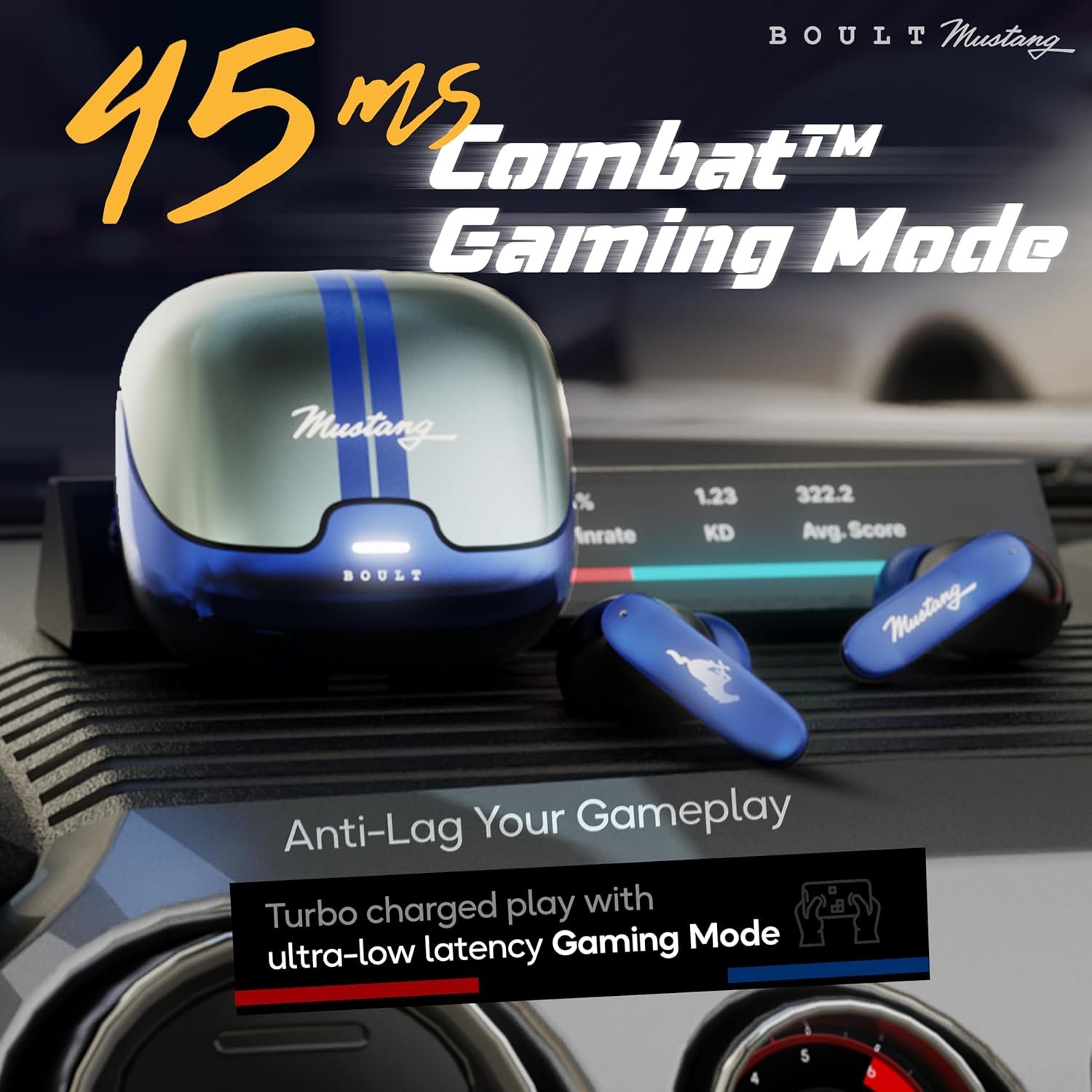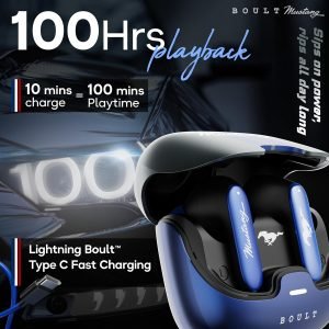 | Special Features | Sweatproof, 100H Playtime, Bluetooth 5.4, Noise Isolation, Integrated Equalizer, 13mm Bass Drivers, Dual Device Pairing, Built in App Support, Boult X Mustang. World Class Design | Advanced Tech | Exhilarating Speed, 45ms Low Latency Gaming, Touch Control |