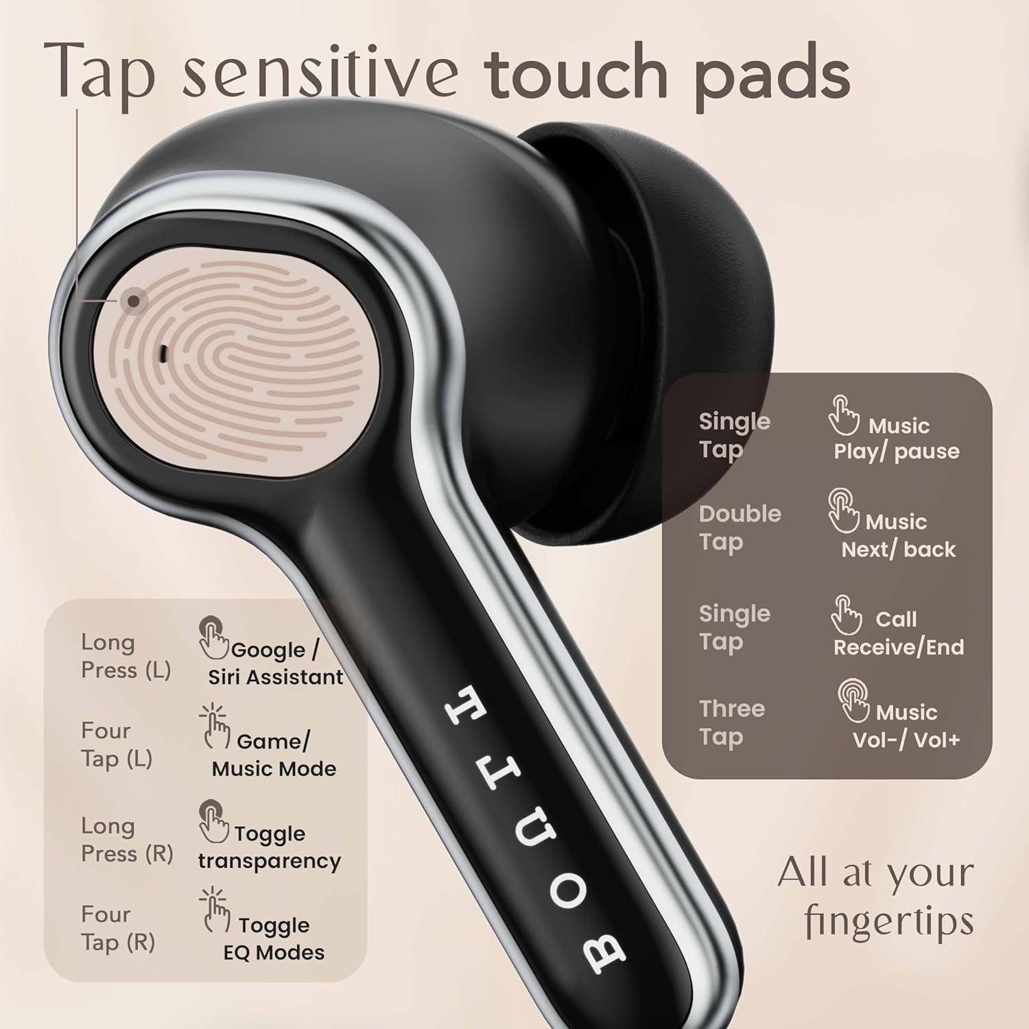 | Special Features | 4 Mics ENC ear buds, 32dB Active Noise Cancellation, Dual Device Pairing, 3 EQ Modes, 100Hr Playtime earbuds |