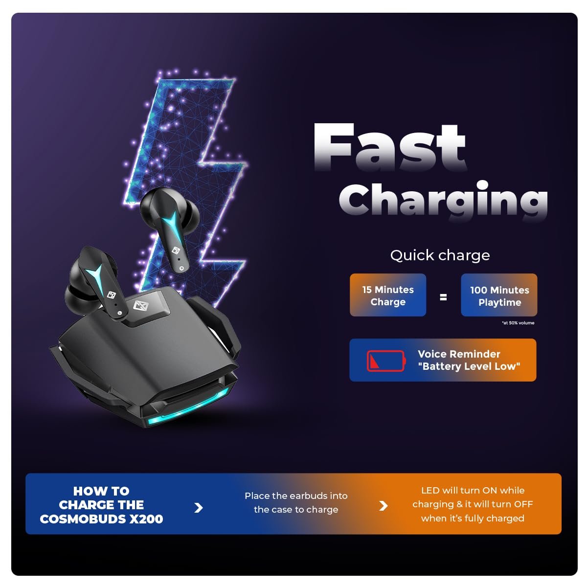 Cosmic Byte CosmoBuds X200 True Wireless Earbuds (TWS), BT 5.3, 38ms latency GOD Mode™,(Silky Matt Black)