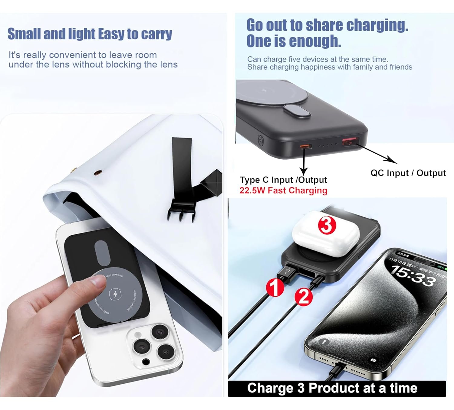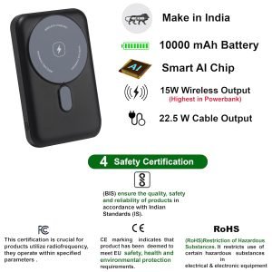 Fire Beat Magnetic Wireless Power Bank comes with 10000 mah Capacity with Smart AI Protection and 15W Wireless Charging and 22.5W Cable Fast Charging. with Double Tape inside Packaging to ensure the safety of the customer due to leakage or Bursting of Batteries. The Power Bank 10000mah comes with 1 USB A Type Port (20W) and 1 USB C Type Port(22.5W). WhatsApp customer care for customer query solution if they face any issues. Fire Beat is a women empowerment oriented new startup aiming to provide the good powerbank charger mobile accessories which are durable and last long, The Fire Beat equipped with Smart AI Chip protects against power fluctuation, short circuit, over charging , over heat etcc. We surely strive to provide the best quality with best output product in make in india banner, and hope to get your co operation for this women empowerment oriented firm.