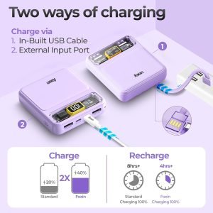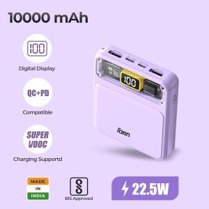 Be the first to review “Foxin All-in-One 22.5W QC+PD Power Bank with Built-in Charging Cables 10000 mAh, BIS Certified, Purple”