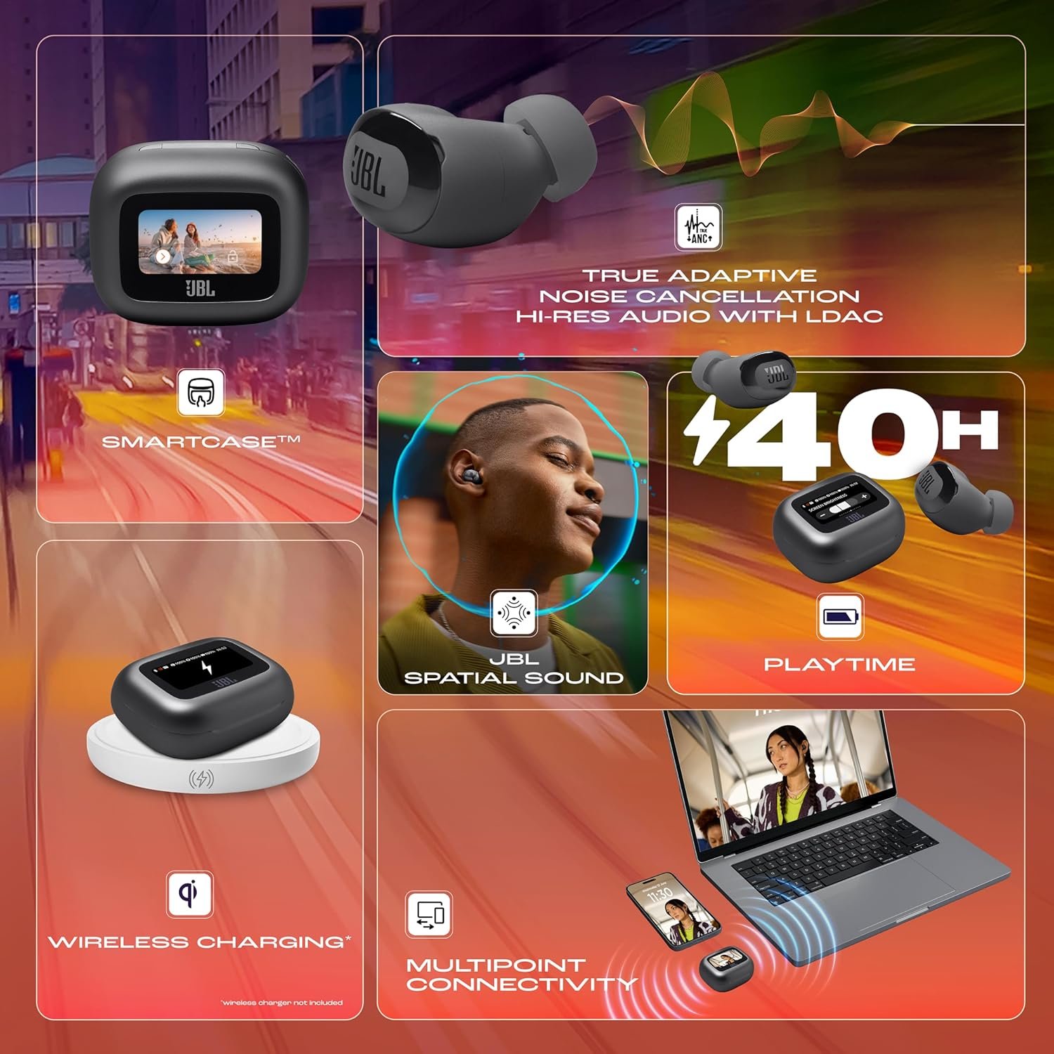 JBL New Launch Live in Ear Buds 3,Hi-Res Audio True ANC TWS,Smart Case with Touch Display,40H Playtime, Black