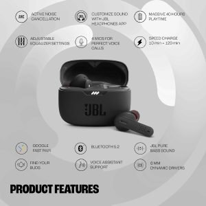 | Special Feature | Active Noise Cancellation, Personalization with JBL Headphones App, Ambient Aware & Talk Thru, Microphone Included, Water Resistant & Sweatproof |