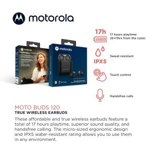 Be the first to review “Motorola Moto Buds 120 – True Wireless Bluetooth Earbuds with Microphone , Clear Sound – Black”