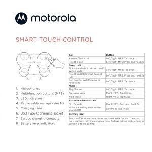 Motorola wireless earbuds are designed with comfort in mind, strong acoustics, and portability. These affordable water resistant ear buds with totally 18 hours of playtime offer superior sound quality and handsfree calling. Wireless earbuds for phone calls feature a built-in microphone in each ear bud for use together as a pair or as a mono headset. Smart touch-control for calls and voice command is ideal for travel accessories for business professionals. Designed with the commuter in mind, these Bluetooth earphones help resist sweat, moisture, and the elements to ensure a crystal clear sound experience for travel. These ear buds make a great gift for everyone. Great as travel accessories, our earbuds have both active and environmental noise cancellation so you can enjoy clear music anywhere. Included is a wireless charging case (charging pad not supplied). Life is better with great sound. That’s why Motorola Sound designs products for the way you really hear. We carry true in-ear headphones, true wireless earbuds, over-ear headbands, and more.