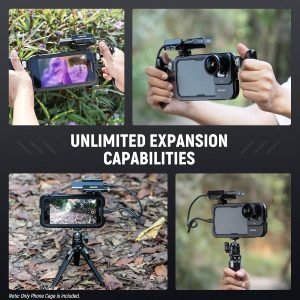 Only compatible with iPhone 15 Pro, this aluminum alloy phone cage with a soft rubber cushion provides reliable protection while keeping it slim. The hollow back is compatible with MagSafe wireless charging and NEEWER PA010 Magnetic Phone Holder.