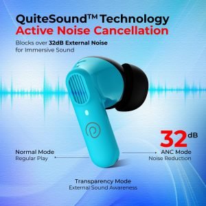 pTron Newly Launched Zenbuds 1 V2 32dB ANC TWS Earbuds, Transparency Mode, , 40H Playtime, Blue