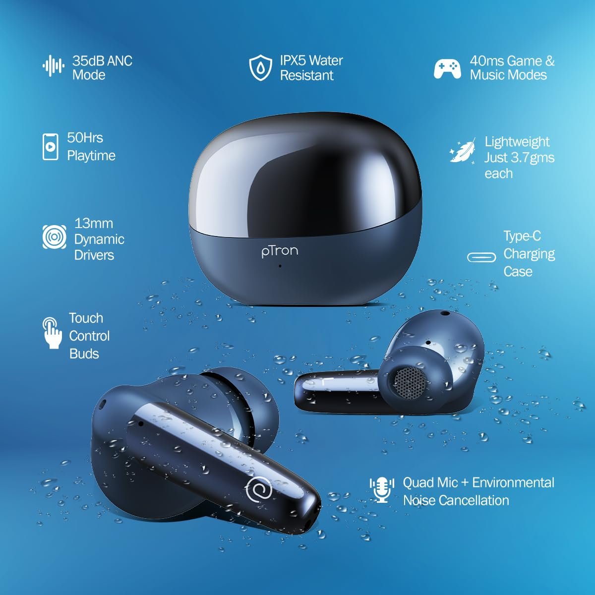 | Special Feature | 35dB Hybrid ANC TWS Earbuds; Transparency Mode; Quad Mic with ENC for Stereo Calls; AptSense 40ms Low-Latency Streaming; 50 Hrs Playtime; 13mm Driver for Immersive Stereo Sound; Bluetooth V5.3 with 1-Step Pairing; Snug-fit & Lightweight; Touch Controls; Voice Assist Ready; IPX5 Water Resistant; 1-Year Manufacturer Warranty |