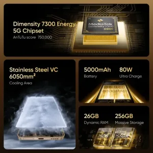 • Ultra Powerful Chipset: Powered by the Dimensity 7300E chipset, the Realme 13+ 5G delivers ultra-smooth performance, stunning graphics, and efficient power management, making every interaction swift and responsive.