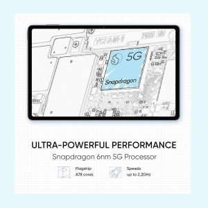 Powered by an efficient Snapdragon 6 nm 5G processor and clock speed of up to 2.2 GHzthis tablet lets you take pleasure in smooth multitasking and unmatched gaming performance. Moreover, the 6 nm process facilitates enhanced efficiency and extended battery life, thus allowing you to stay engaged in entertainment throughout the day.