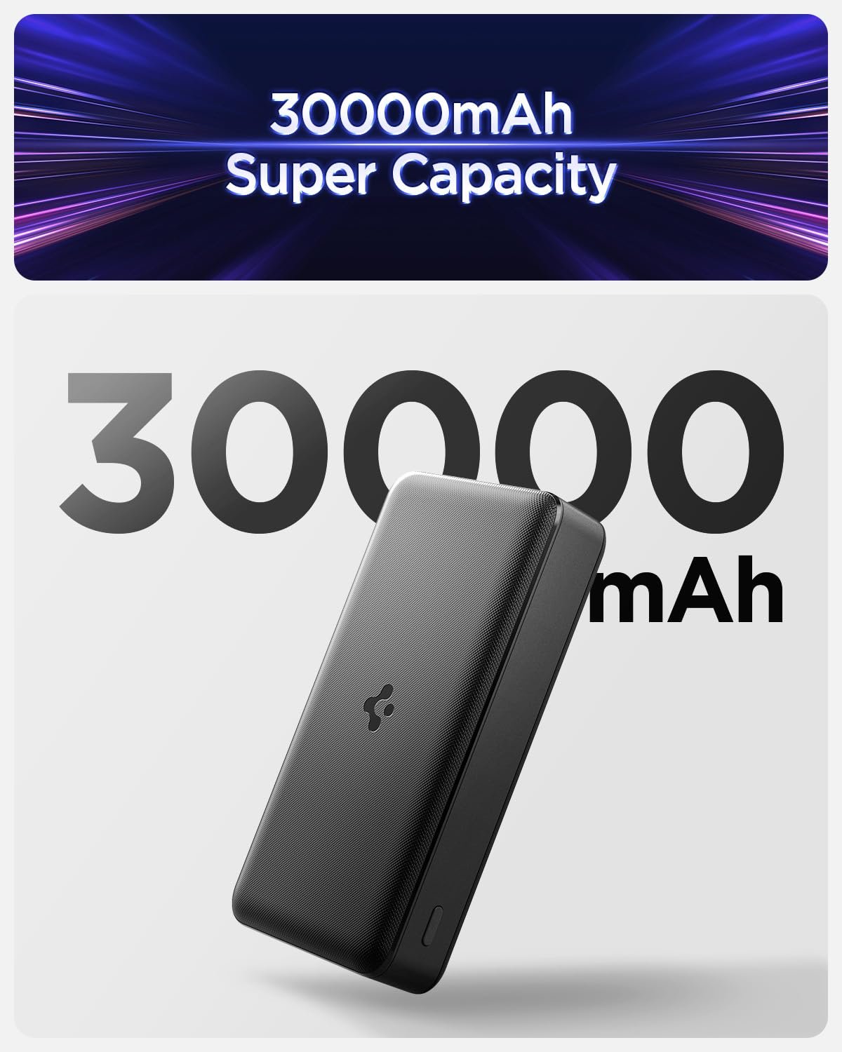 Spigen 30,000 mAh, 22.5W Fast Charging Power Bank with 20W for 2 USB C Ports, Black