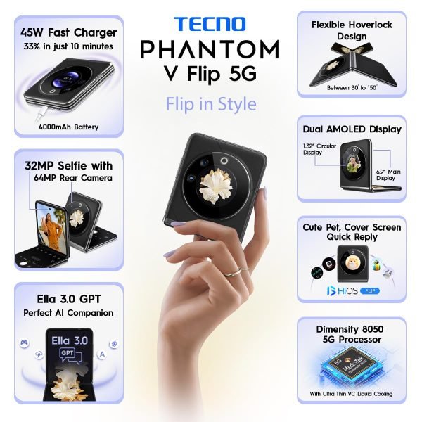 Be the first to review “TECNO Phantom V Flip 5G (Iconic Black 8GB RAM,256GB Storage)”