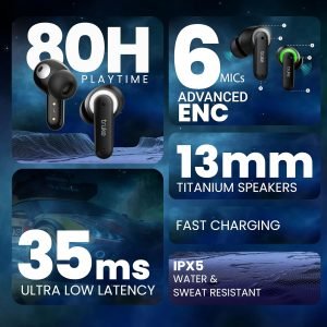earbuds with 80 hours playtime. gaming mode with 35ms low latency
