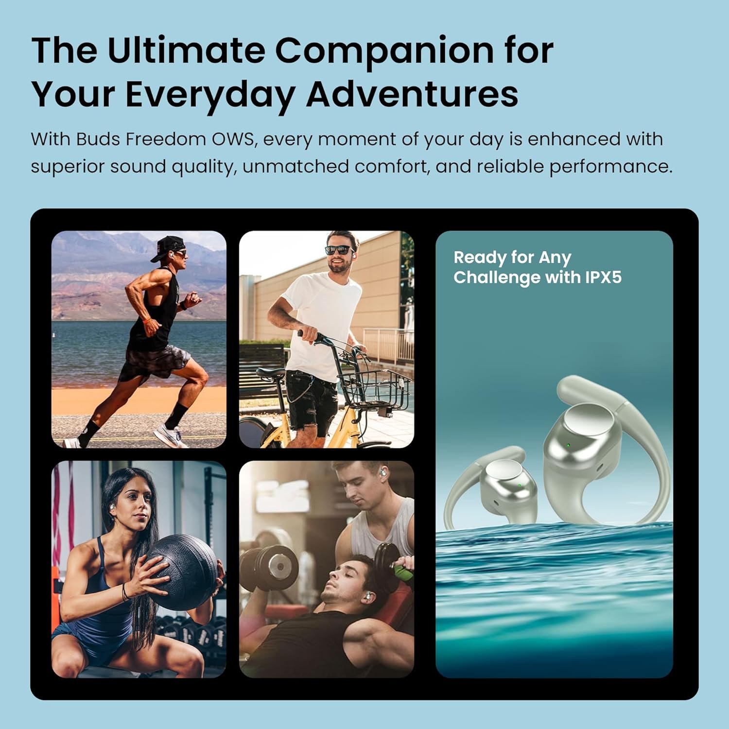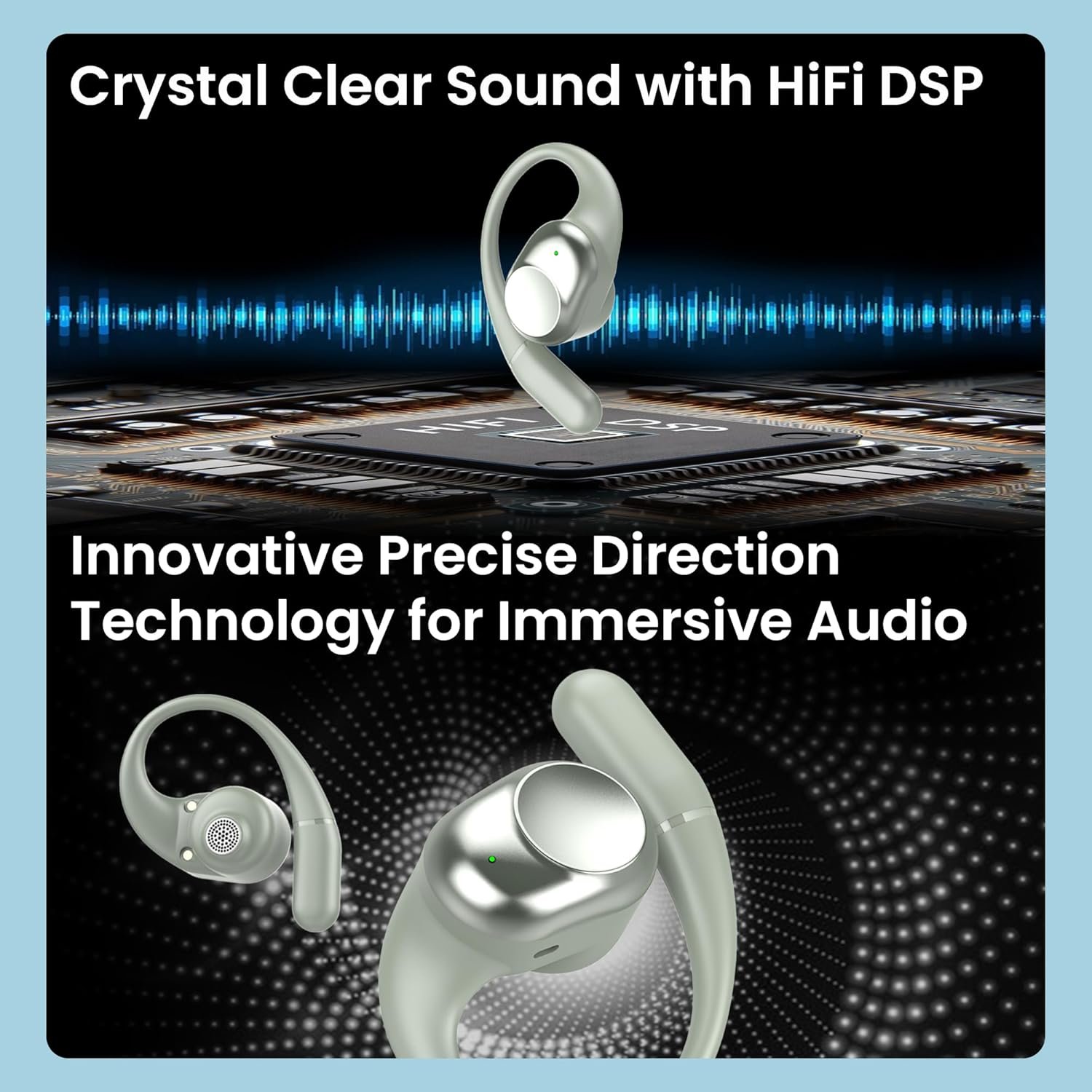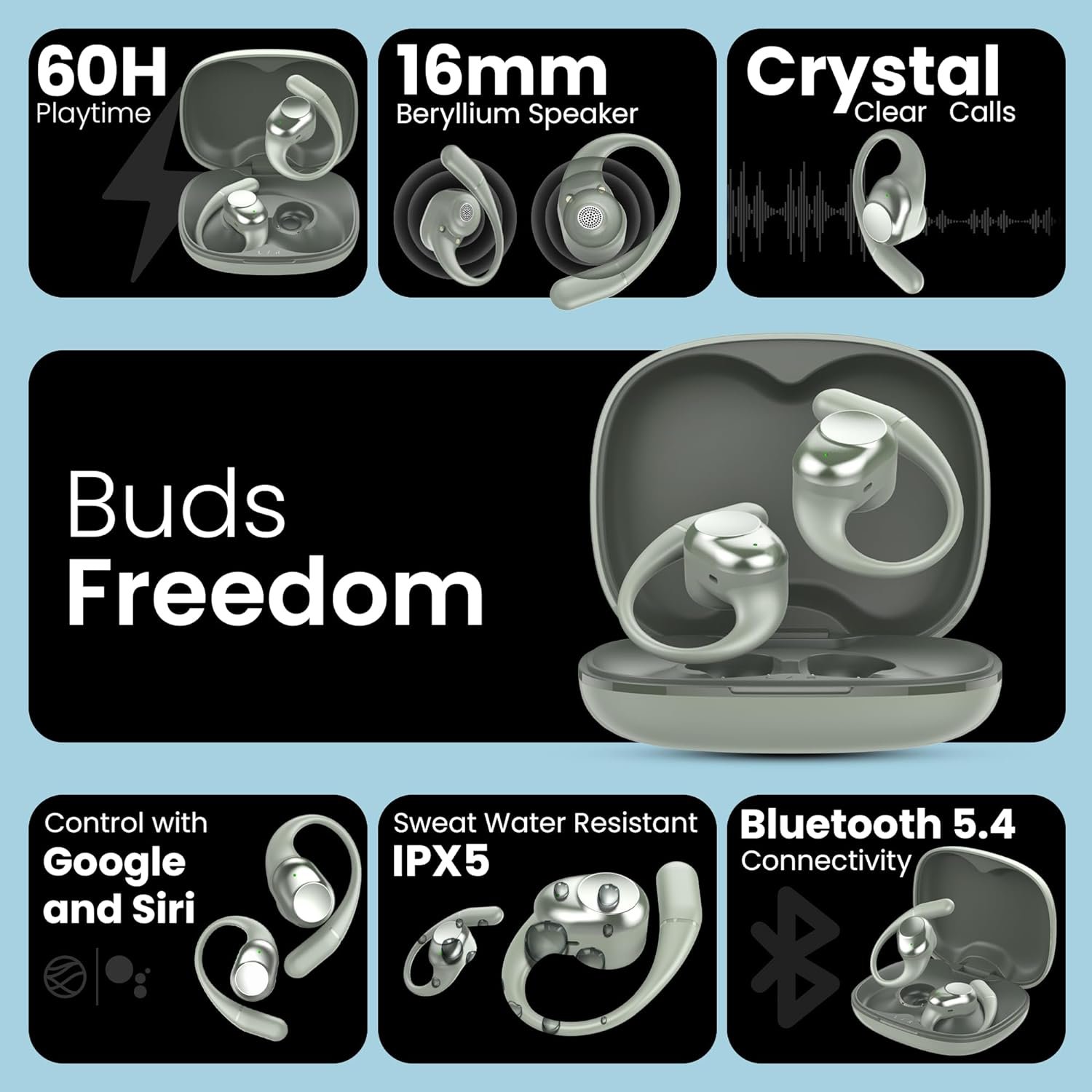 | Special Features | HiFi DSP technology with 16mm Beryllium speaker driver, Ultimate Comfort with our Patented Open Ear Earbuds, 60H Playtime, Bluetooth 5.4, IPX5 Sweat & Water Resistant, Google Assistant and Siri Support, Quad Mic PureVoice™ ENC Technology for Crystal-Clear Calls, Safe way to listen to music, always stay aware of your surroundings |