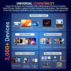 Tukzer GaN chargers are compatible with a wide range of devices, ensuring you’re always powered up and ready.